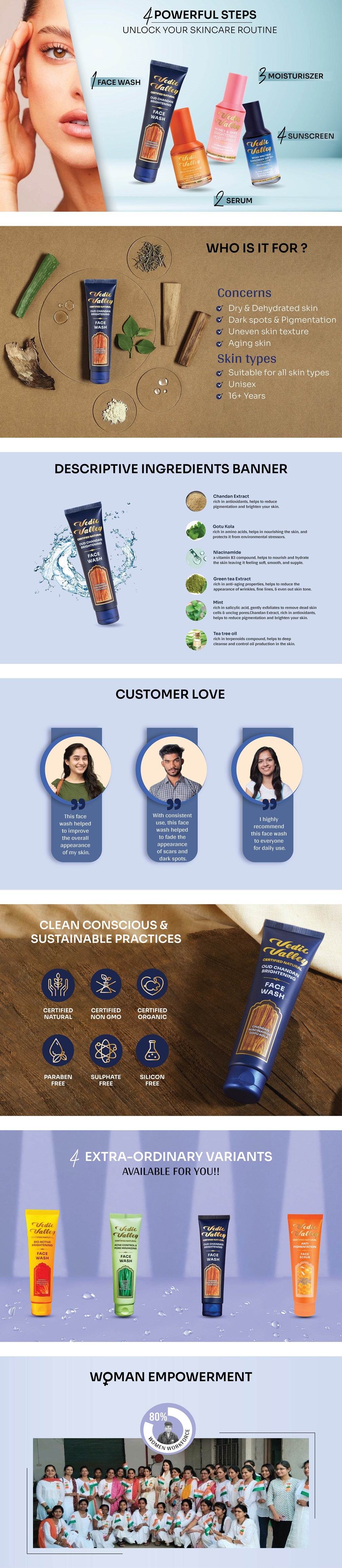 Choose to boost the complexion even further by combining face wash with Vedic Valley’s detan face scrub.