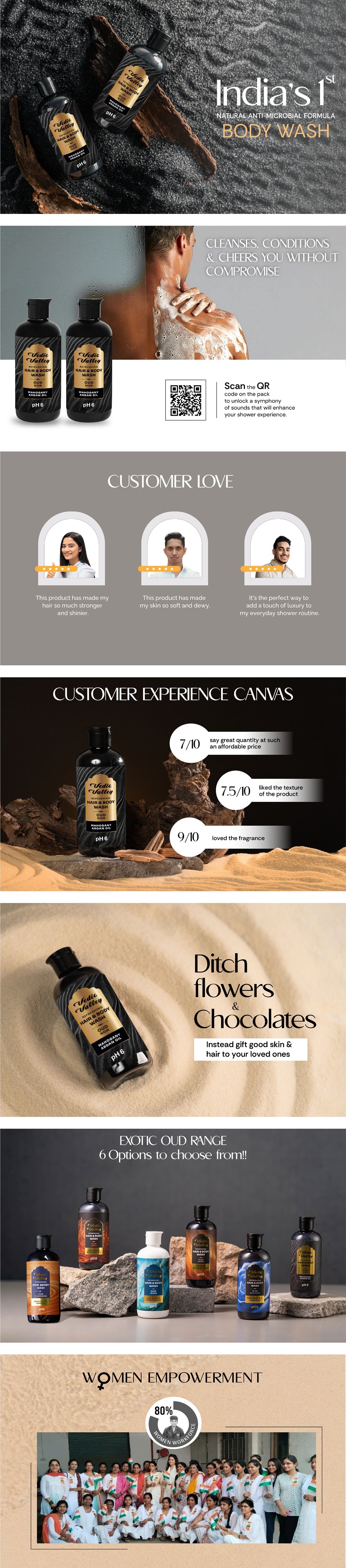 Oud Noir is a classic and timeless fragrance for the modern gentleman. It is a blend of core Indian spices such as Cardamom, Saffron & Pepper infused with Cedar, Patchouli & Vetiver, creating a luxurious, sophisticated aroma. It’s time to feel exquisite & elevate your shower experience.
